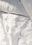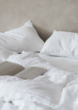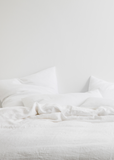 Cultiver white duvet cover set crafted in pre-washed pure linen. Features two king size pillowcases and one king size duvet finished with a button closure and internal ties in each corner to secure your insert.