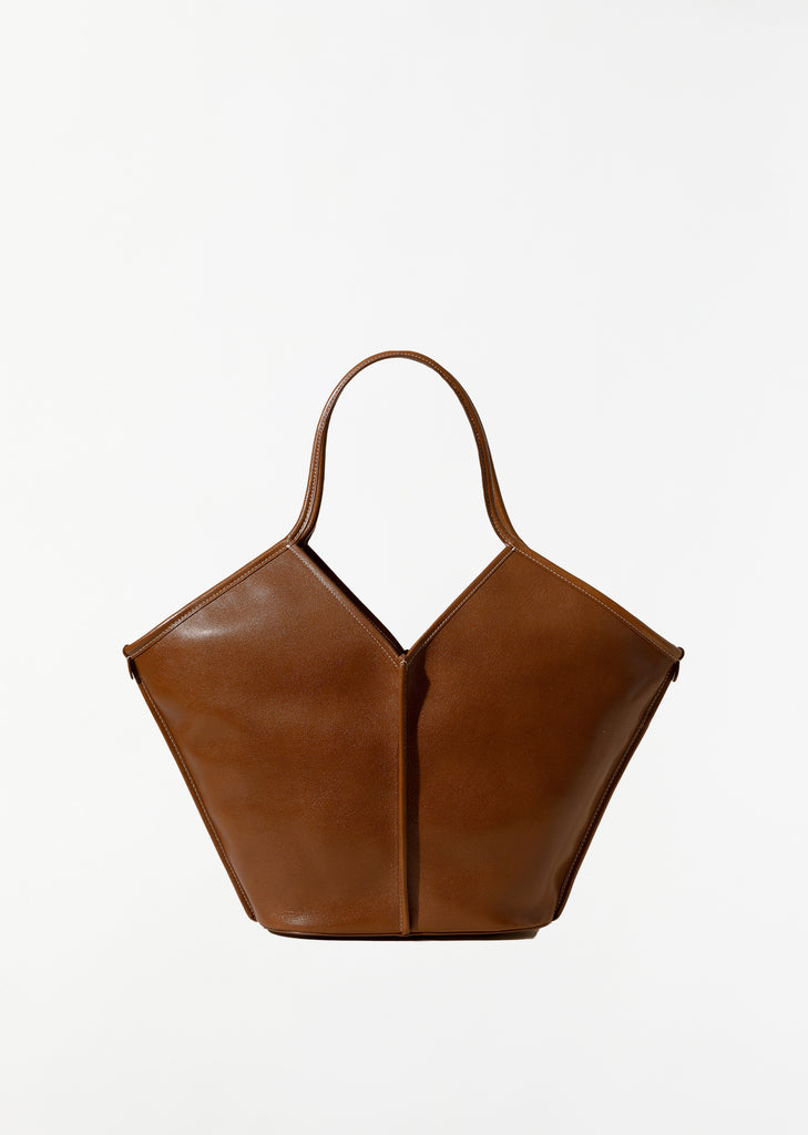 Hereu bark tote bag crafted in shiny calf leather. Features a detachable calf leather zipped pouch and slim top handles that sit over the shoulder.