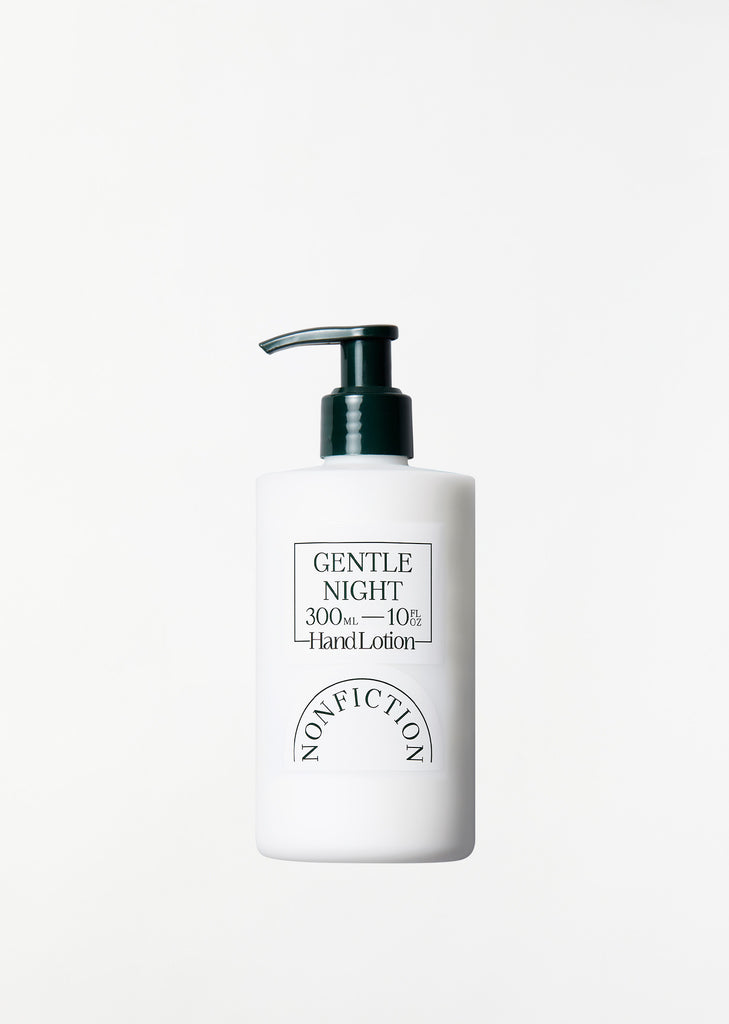 Nonfiction's hand lotion is readily absorbed to instantly hydrate the skin and is lightly textured with hyaluronic acid and enriched with shea butter.