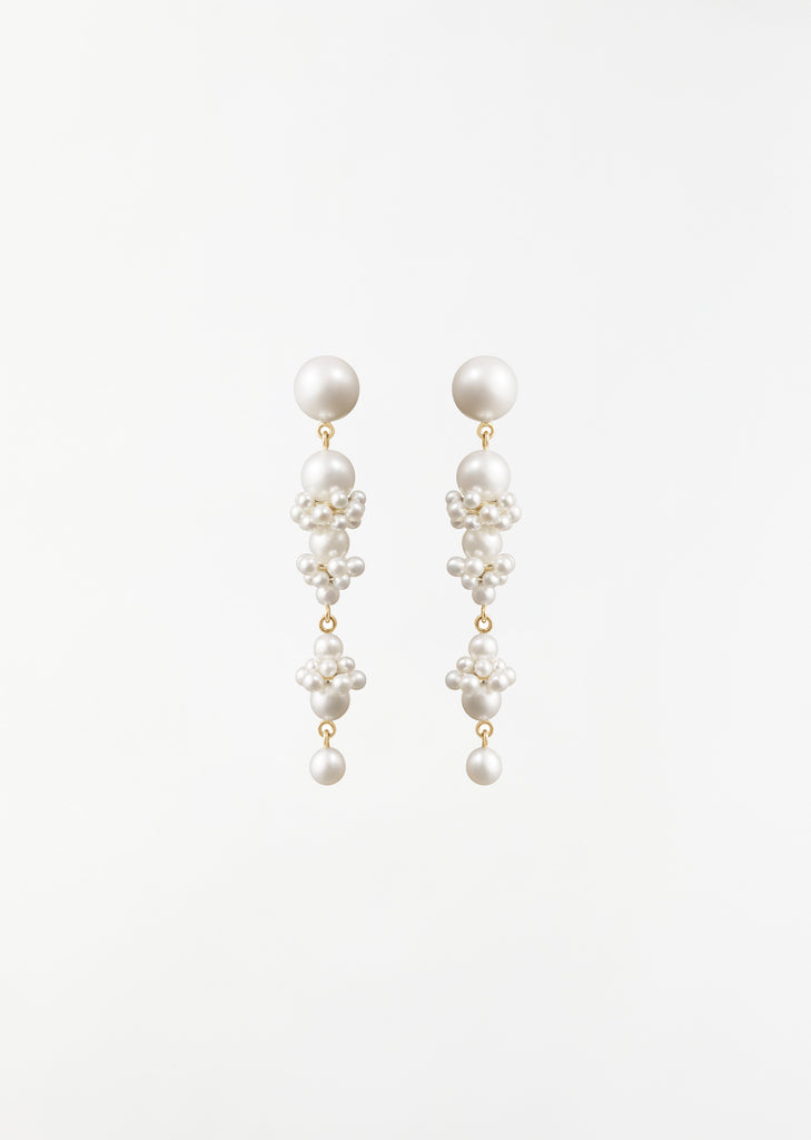 Sophie Bille Brahe earrings inspired by florals and the natural state of nature. A cluster of drop freshwater pearls varying in size set on a 14K gold post setting. Crafted in 14K yellow gold with freshwater pearls.
