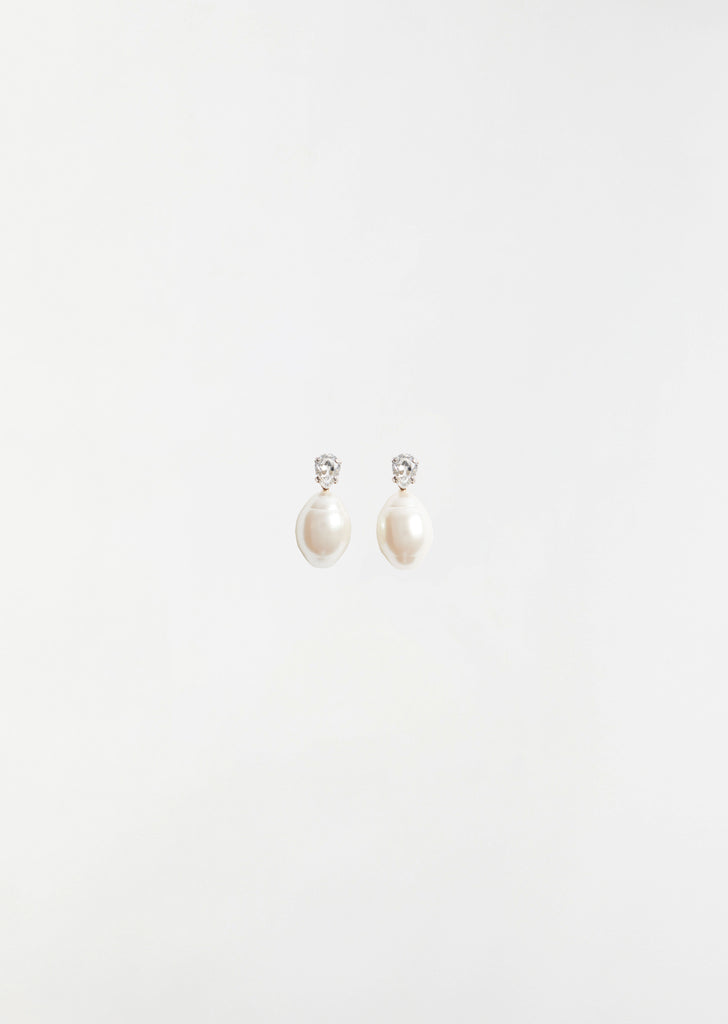 Simone Rocha faux pearl drop earrings set on a crystal silver-toned stud post.