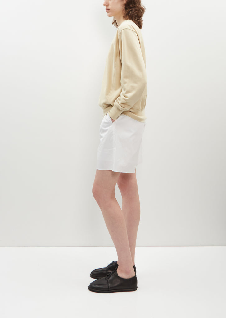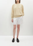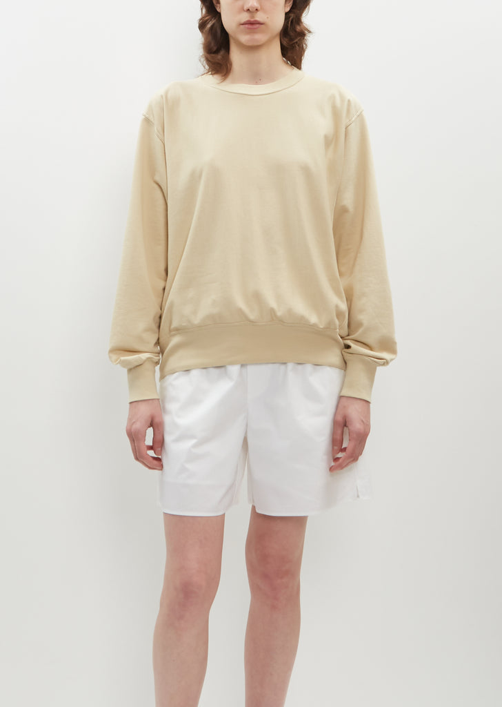 Auralee signature sweatshirt in light beige in ultra soft cotton jersey. Features a dropped shoulder and rib trim at neckline, sleeve cuffs and hem. Relaxed fit.