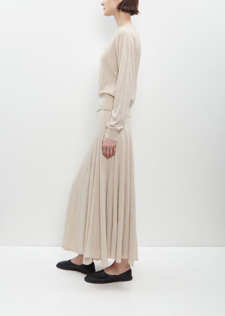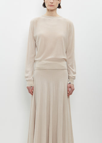 Extreme Cashmere beige cropped sweater with a round neck and subtle bat sleeves in super-fine soft cashmere. Finished with rib trim at neck and cuffs.