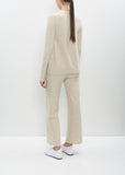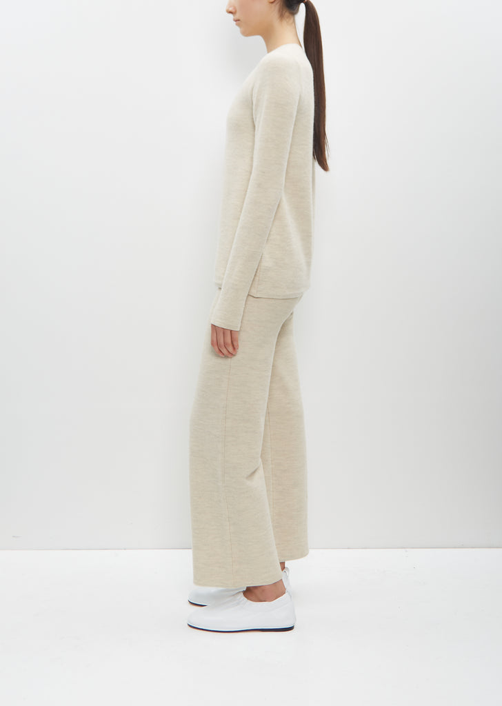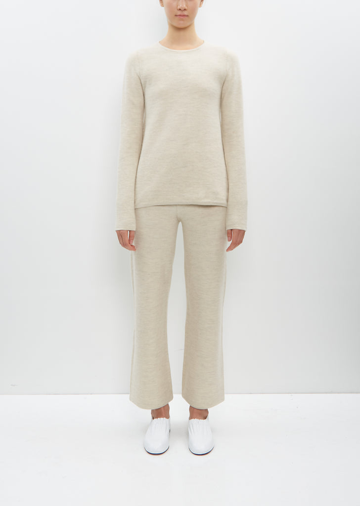 Lauren Manoogian ecru and grey mélange pull-on pants with straight legs in merino wool and baby alpaca blend knit. Features an elasticated waistband and tubular finishing at hem.