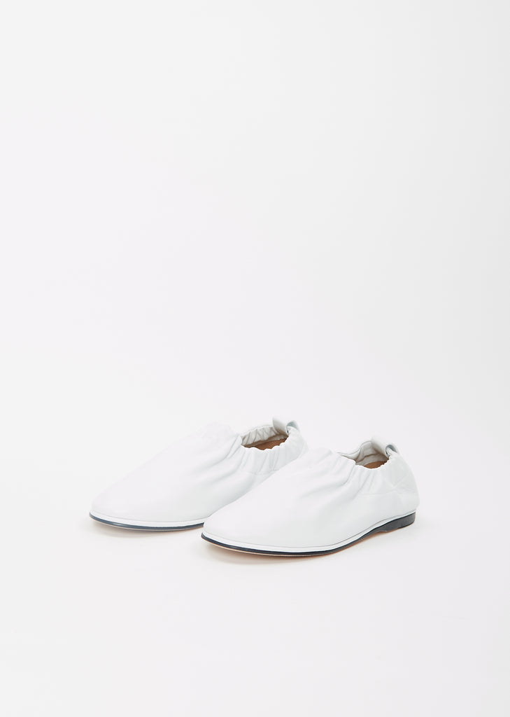 Lauren Manoogian bone white ballet flats with a ruched and elasticated opening handmade in soft nappa leather. Features a round toe and a leather sole. Unlined.