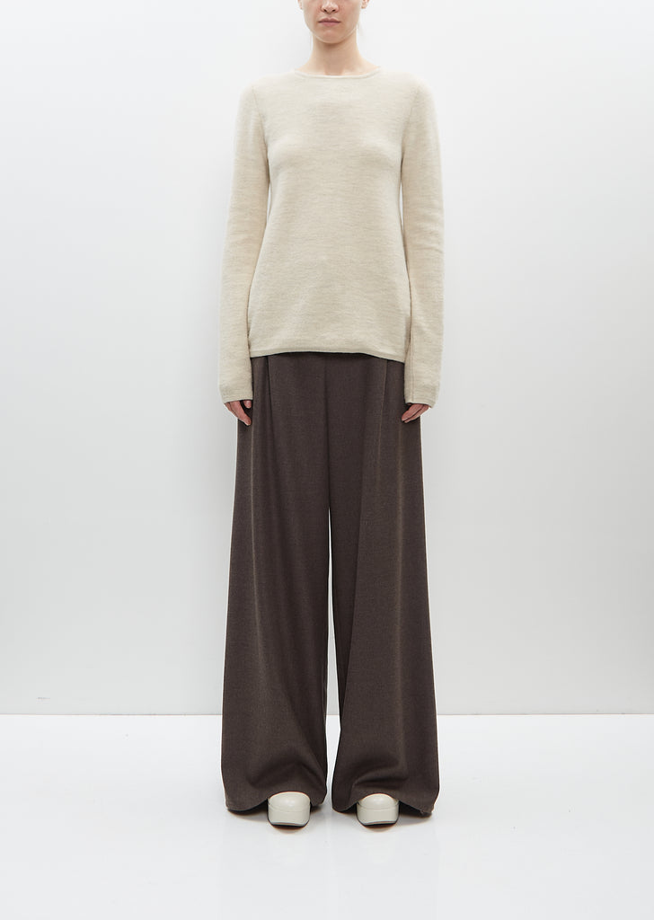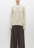 Lauren Manoogian ecru long sleeve crewneck sweater in subtle stretch merino wool and baby alpaca knit. Features tubular finishing at hem. Close fit.