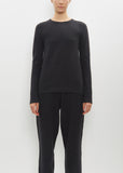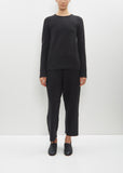 Lauren Manoogian ink black long sleeve crewneck sweater in subtle stretch merino wool and baby alpaca knit. Features tubular finishing at hem. Close fit.