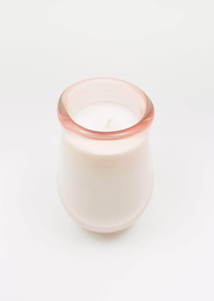 LIGHT REIGN's soft pink candle in handblown glass and hand poured all natural soy and coconut wax and essential oils. Burn time is approximately 60 hours. These handblown pieces may vary in color, size, and shape. For best results, begin with at least a 2 hr burn. Trim wick bloom between each burn.