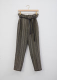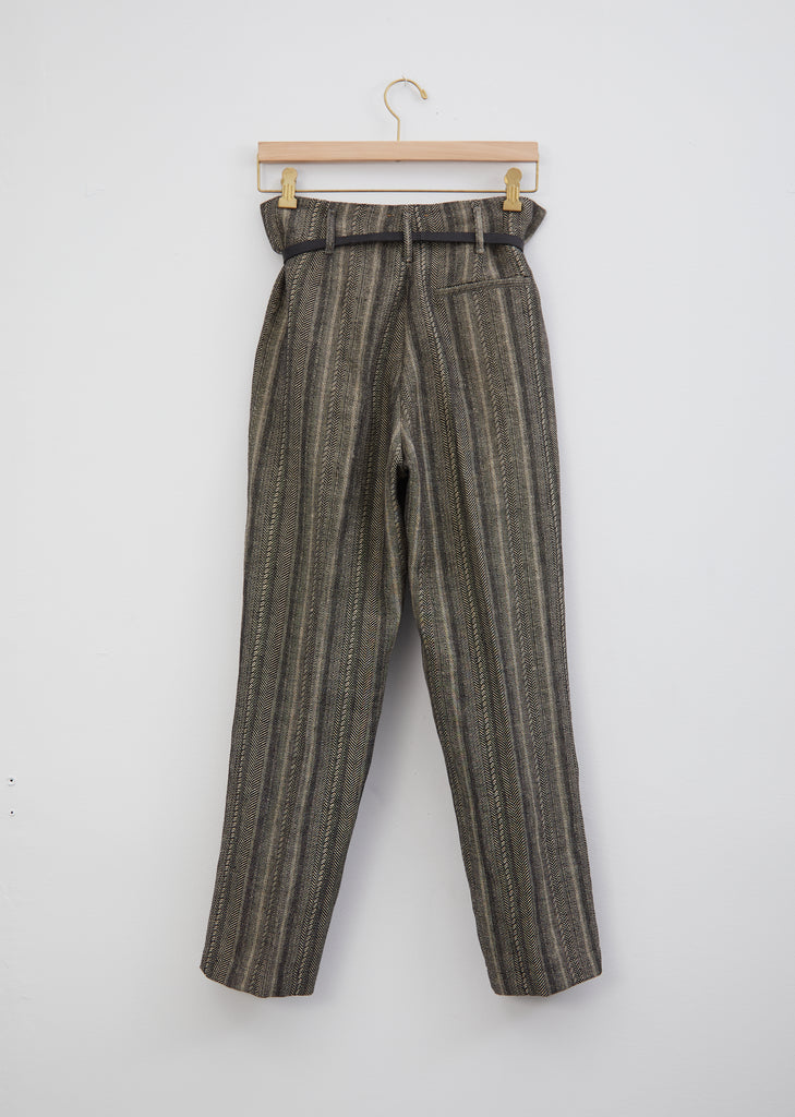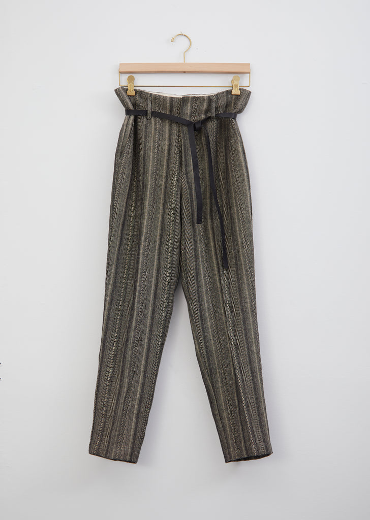 Forte Forte Herringbone Trouser in a black & grey tones. Crafted in Italy with a blend of cotton & linen herringbone fabric, this dressy summer trouser has a slightly dropped rise with a tapered fit and pressed front legs. We recommend you coordinate with a belt from the label for a slouchy, paperbag waist look (as shown in images; belt does not come with this pant).