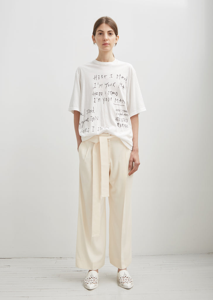 A fluid wide-leg pant from Haider Ackermann’s first unisex-driven collection. Pleated. Slash pockets. Wide sash belt that crisscrosses at back. Cropped at ankle.