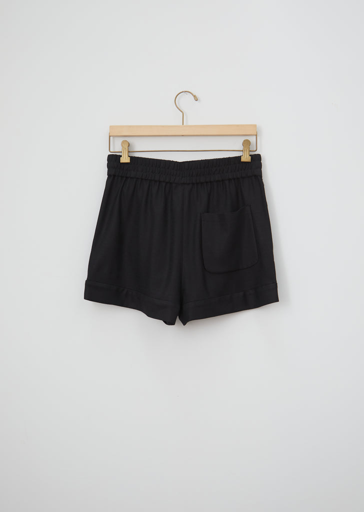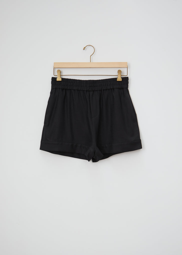 Hope Sun Shorts in black. Crafted of viscose with a hint of stretch, versatile shorts with an elasticized waistband and stitched down cuff detailing.