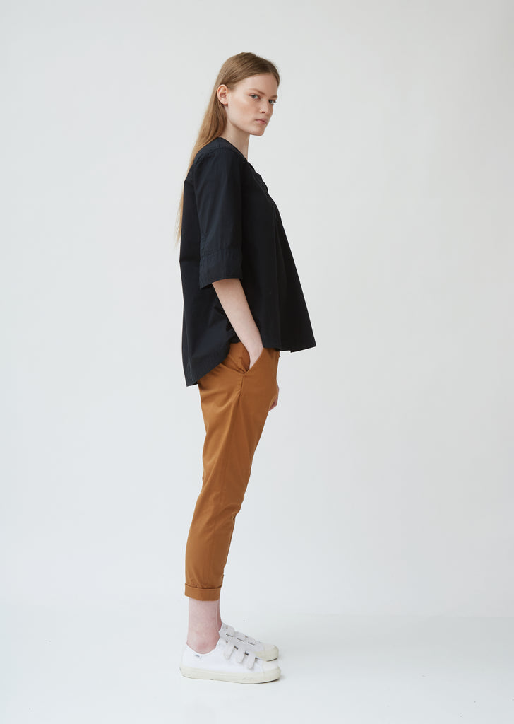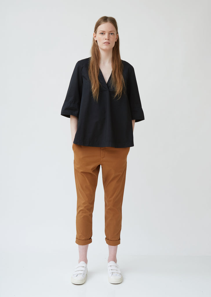 Hope's signature News trousers in clay brown. Cut for a relaxed, tapered-leg fit with a slight drop crotch, this go-to staple features up-folded cuffs, slip pockets in front, and Hope's mismatched pocketing in back. Complete with a zipper fly, hidden hook-bar closure, and belt loops at the waist. Color: Clay Brown. 97% Cotton 3% Elastane. Machine wash. Imported.