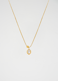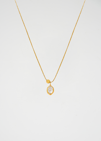 Pippa Small 18K pendant necklace with hand-cut faceted Herkimer stone and mini gold charm set on a fringe cord.