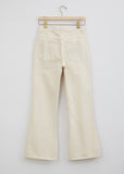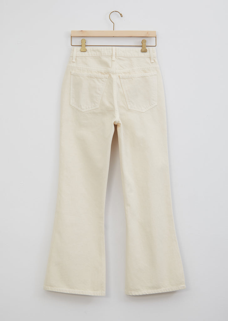 Khaite Gabbie Crop Jean A slightly cropped length refines the flare of this high-rise silhouette, creating a fresh proportion with classic five-pocket styling. Pure cotton denim with tonal topstitching imparts a rich, robust texture. Each hand-finished pair has an enameled button of antiqued brass.