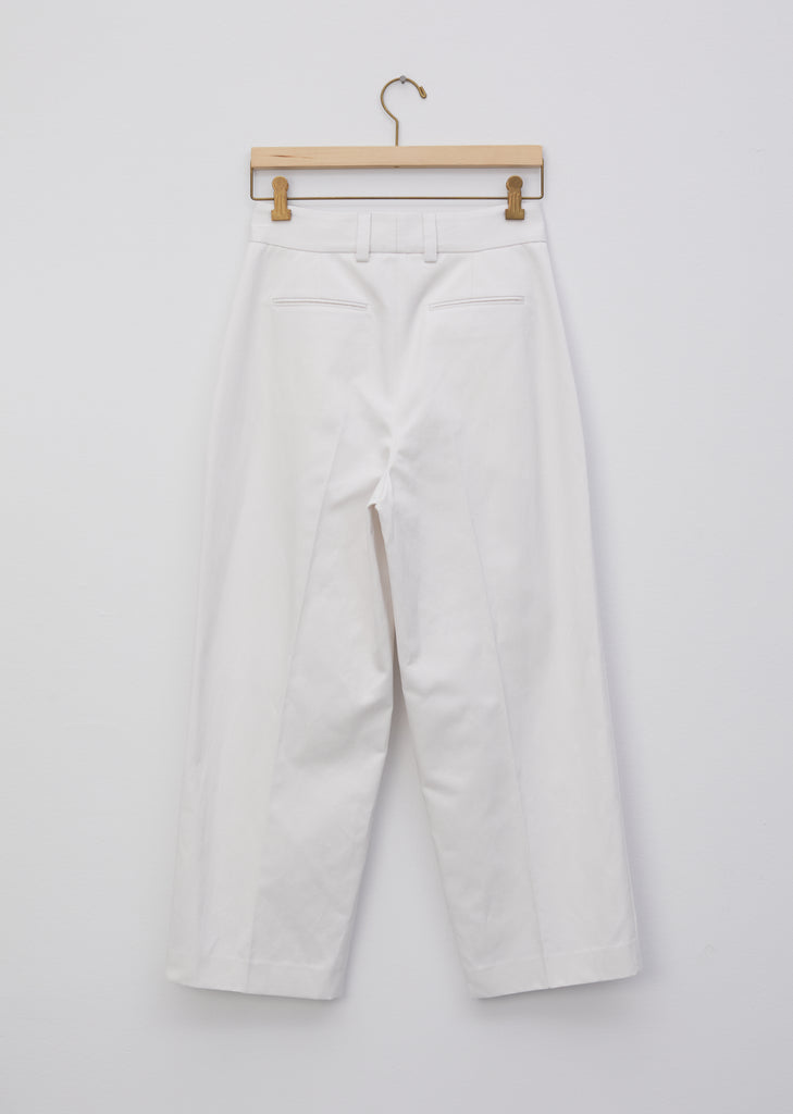 Margaret Howell’s signature deep-pleat trousers are crafted from silky-hand cotton-linen drill and updated in an off-white colorway for the pre-spring season. They’re cut with a loose, tapered wide leg and feature heat-pressed reverse pleats that run the length of the legs. Concealed waistband fastenings provide a polished finish.