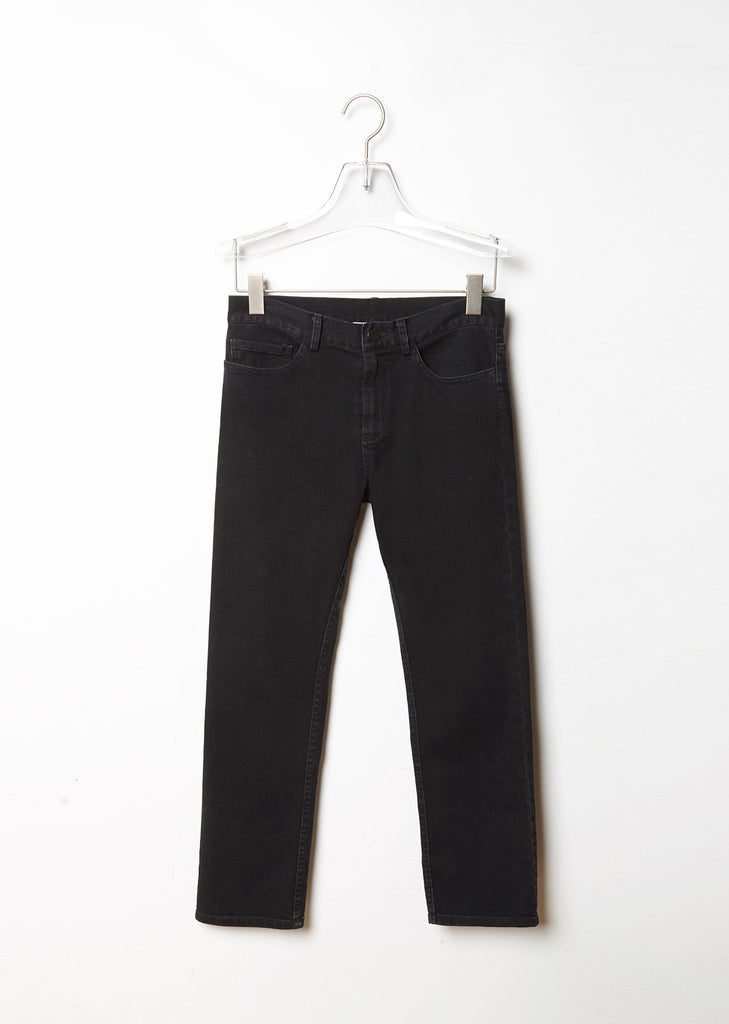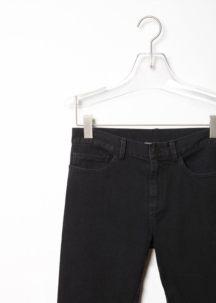 From Moderne, a dark black pair of 5-pocket jeans cut from premium Japanese denim, lightly rinsed for a perfectly broken-in feel that is neither tight nor relaxed.
