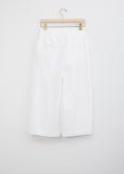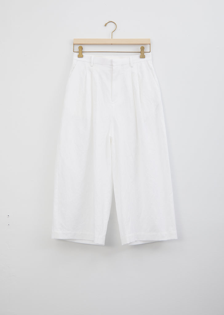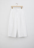 Minä Perhonen Kivi Trouser in white. Crafted of a blend of cotton and linen 'paper' fabric, this cropped wide leg trouser features two front tucks and a set in waistband. This pant sits on that natural waist and has a slouchy fit with a dropped seam. Also available in charcoal.