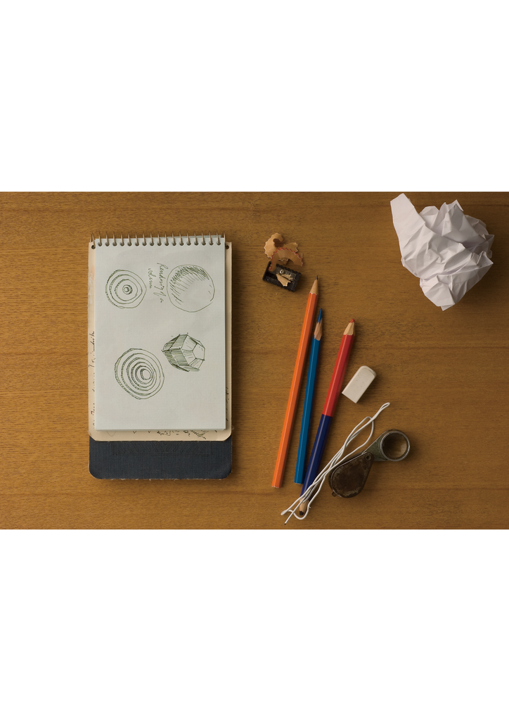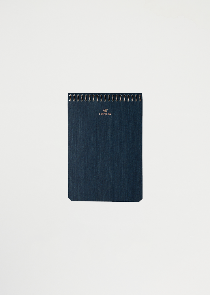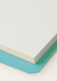 A spiral bound notebook filled with ecologically made and chlorine free 1x1 pale blue pin-graph paper, with pressed cotton covers that will lighten & soften over time. 55 sheets.