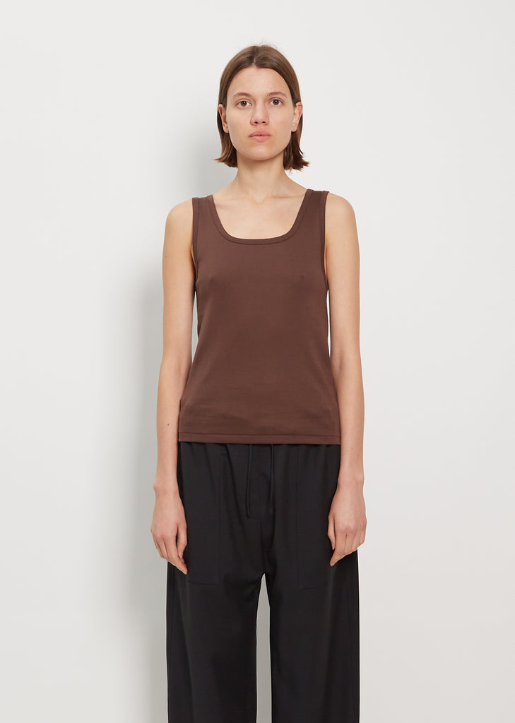 Crafted in Japan — La Garçonne Moderne rib tank with a soft U-neckline at front and round back in fine ribbed cotton jersey. Finished with a banded trim at neckline and armholes. Relaxed, slim fit.