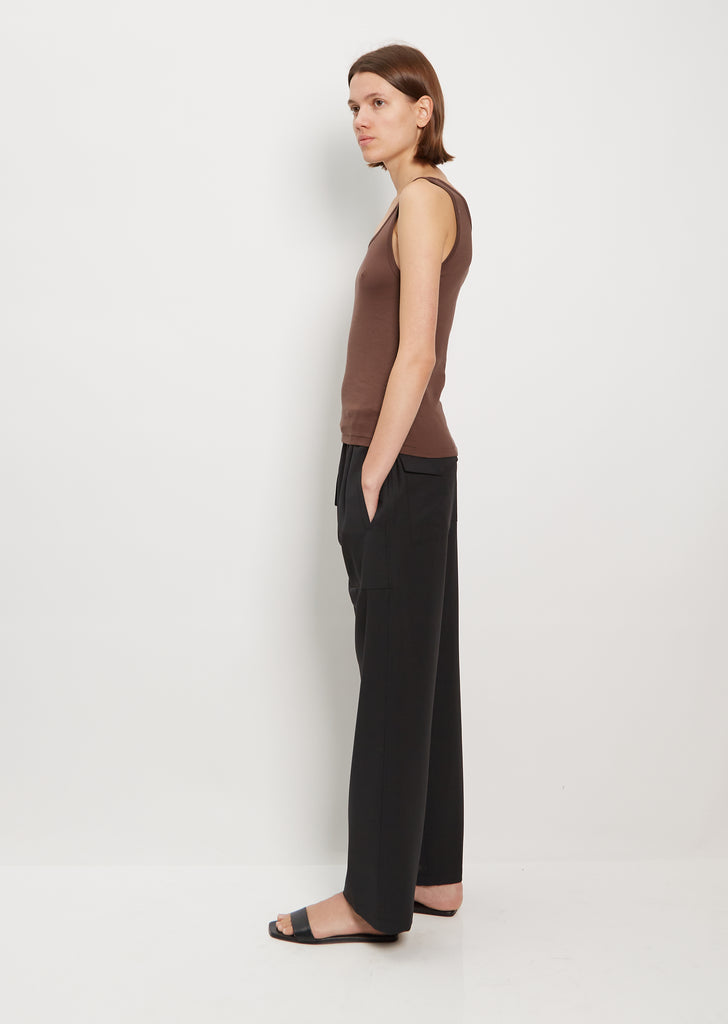 Worn with: Light Wool Drawstring Trousers — Black and Chocolate Flat — Black.