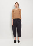 La Garçonne Moderne pull-on trousers with elasticated waist in heavy-weight Japanese canvas. Hidden side pockets. Tapered, cropped legs.