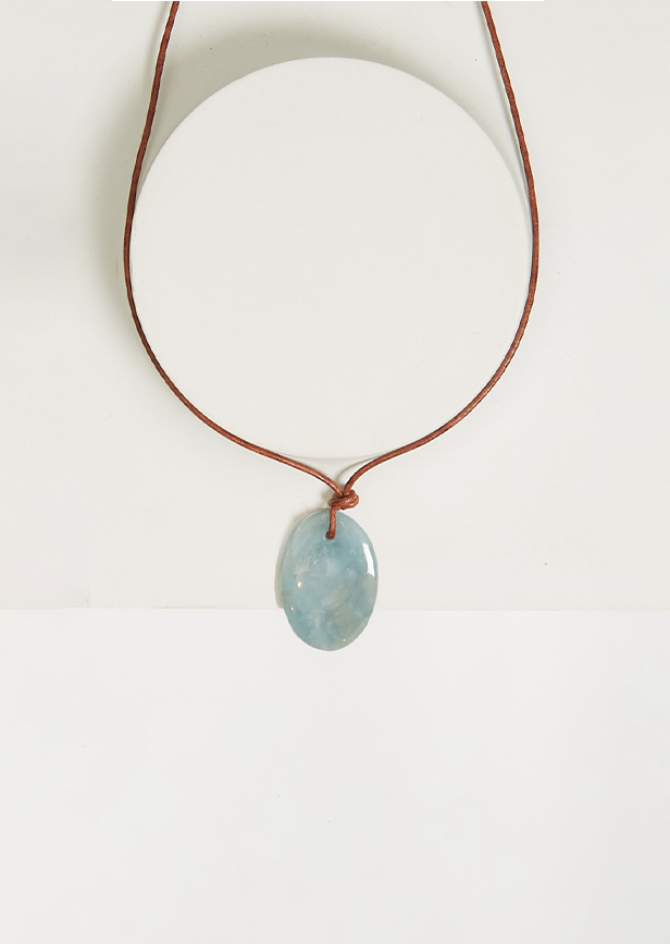 Aquamarine Leather Cord Necklace