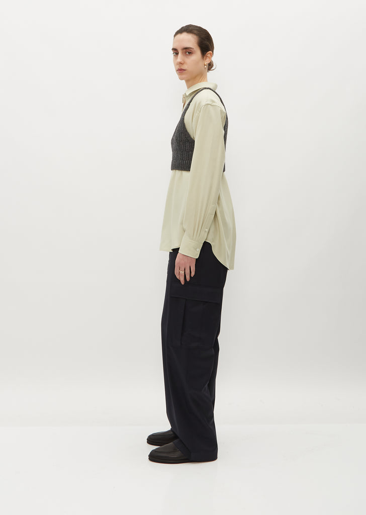Worn with: Super Light Wool ShirtSuper Fine Wool Twill Field PantsRose Drop Diamond EarringPetite Archi Diamond Ring and Leather Shoes.