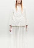 Casey Casey 2-button single-breasted jacket with notched lapels in off white washed linen and cotton blend. Features set-in sleeves and side welt pockets. Finished with tonal buttons.