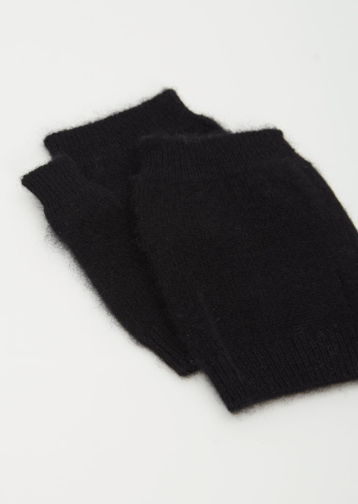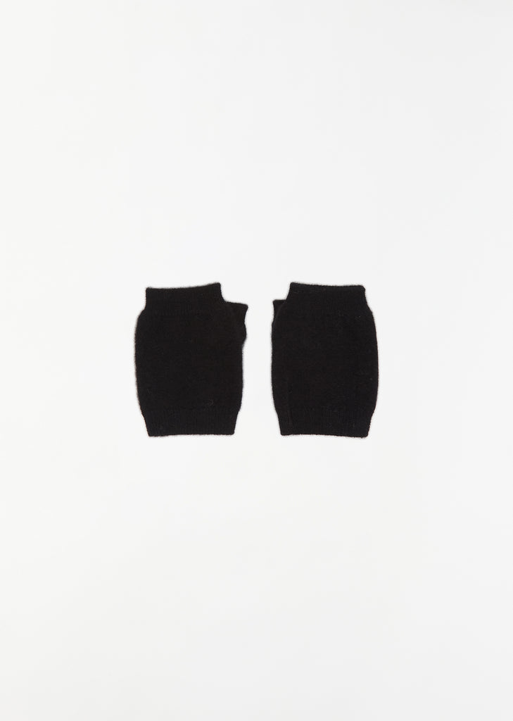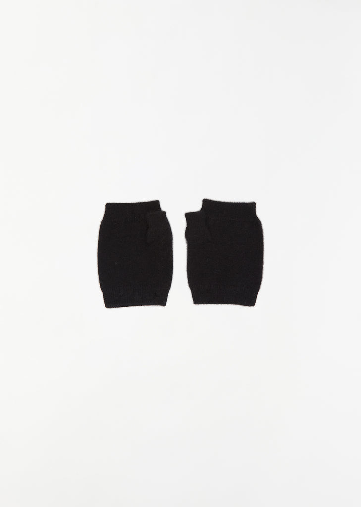 Frenckenberger black fingerless gloves with a thumb insert in medium weight cashmere. Finished with rib trim along all ends.