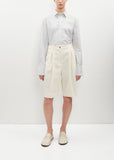 La Collection off white tailored shorts with front pleats in tropical wool. Features slash side pockets and double welt pockets at back. Detailed with belt loops. Button and zip-fly fastening.