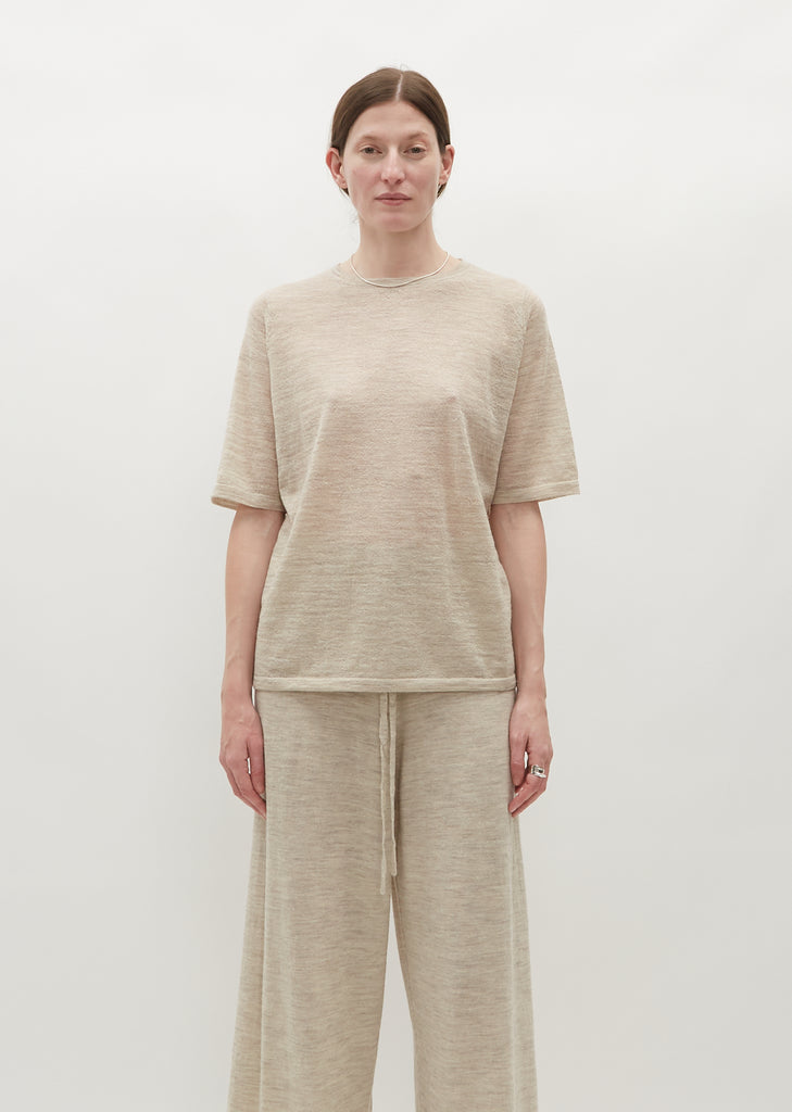 Lauren Manoogian warm white crewneck sweater knitted in lightweight finest grade alpaca. Straight silhouette with a relaxed fit.