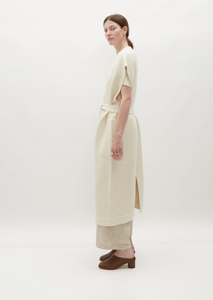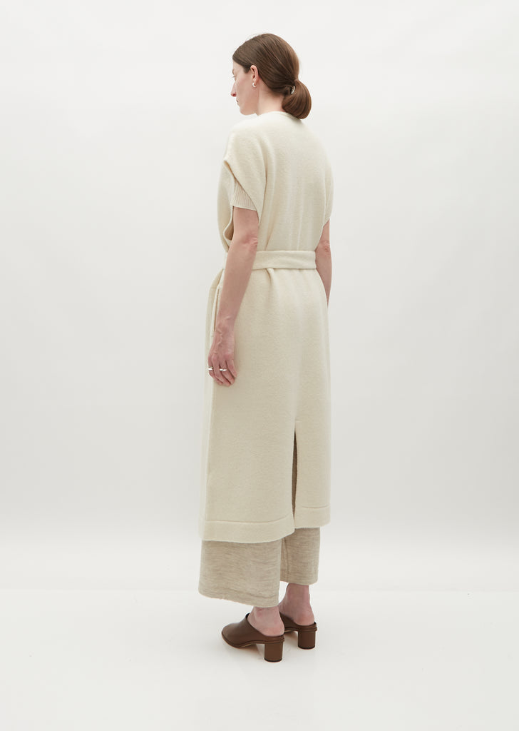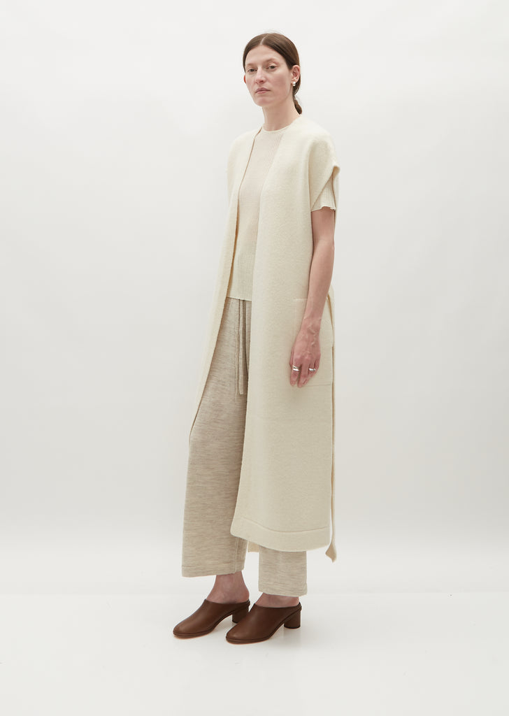 Lauren Manoogian raw white open front long cardigan vest handloomed in heavyweight soft midweight merino wool, baby alpaca, and cashmere blend. Straight silhouette with an relaxed fit.