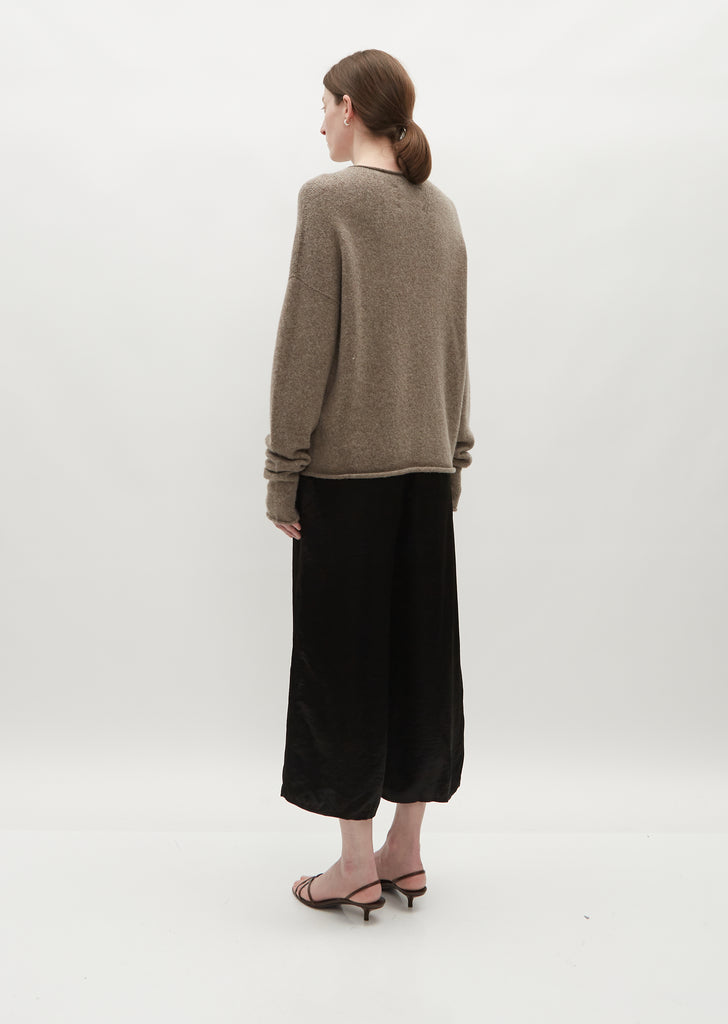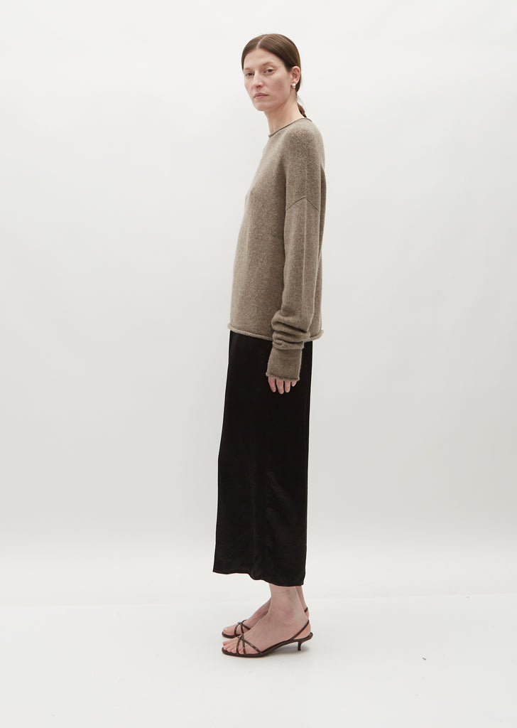 Lauren Manoogian granite seamless crewneck sweater handloomed in soft lightweight finest grade alpaca and cashmere blend. Straight silhouette with a relaxed fit.