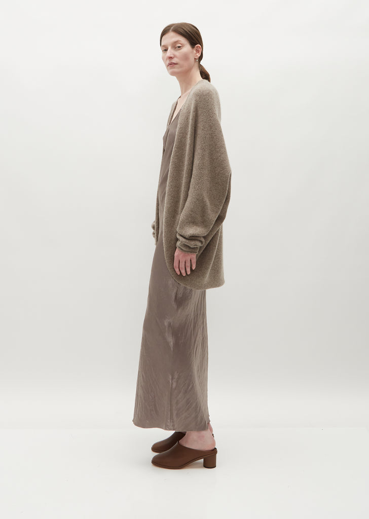 Lauren Manoogian granite seamless open cardigan handloomed in soft lightweight finest grade alpaca and cashmere blend. Slightly boxy silhouette with a relaxed fit.