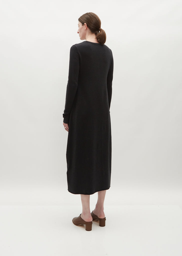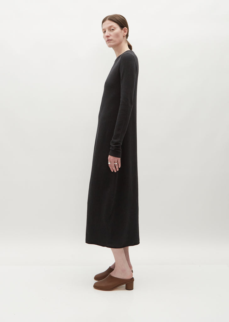 Lauren Manoogian charcoal melange crewneck long sweater dress knitted in soft midweight pima cotton and lycra blend. Slightly A-line silhouette with a fitted fit.