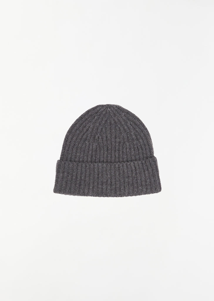 Lisa Yang graphite grey beanie with a double folded brim in ribbed mid-gauge cashmere.