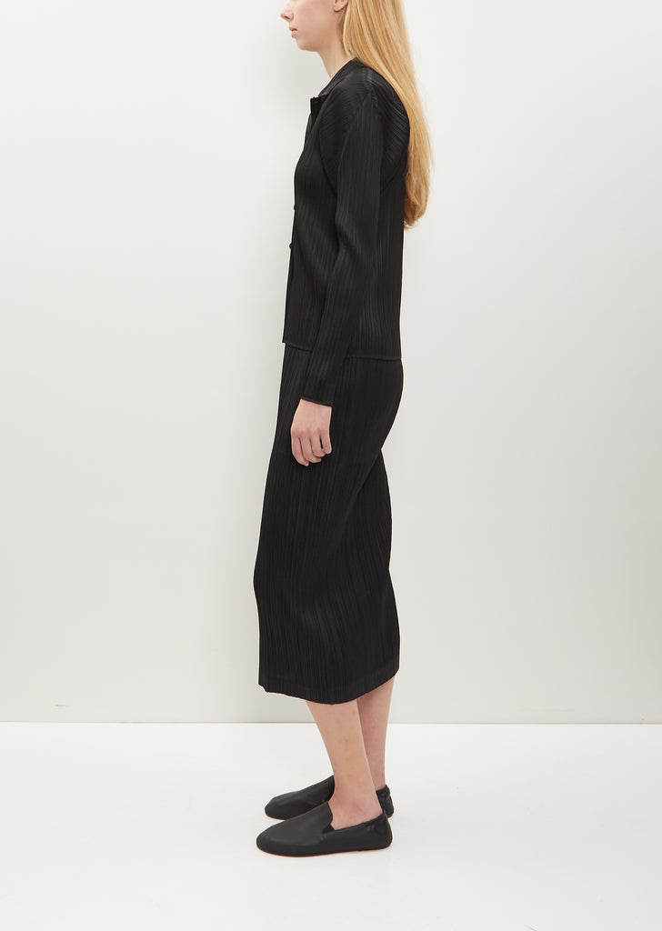 Pleats Please black mid length pencil skirt pleated technical chiffon. Straight silhouette with a closer fit.