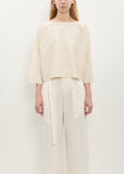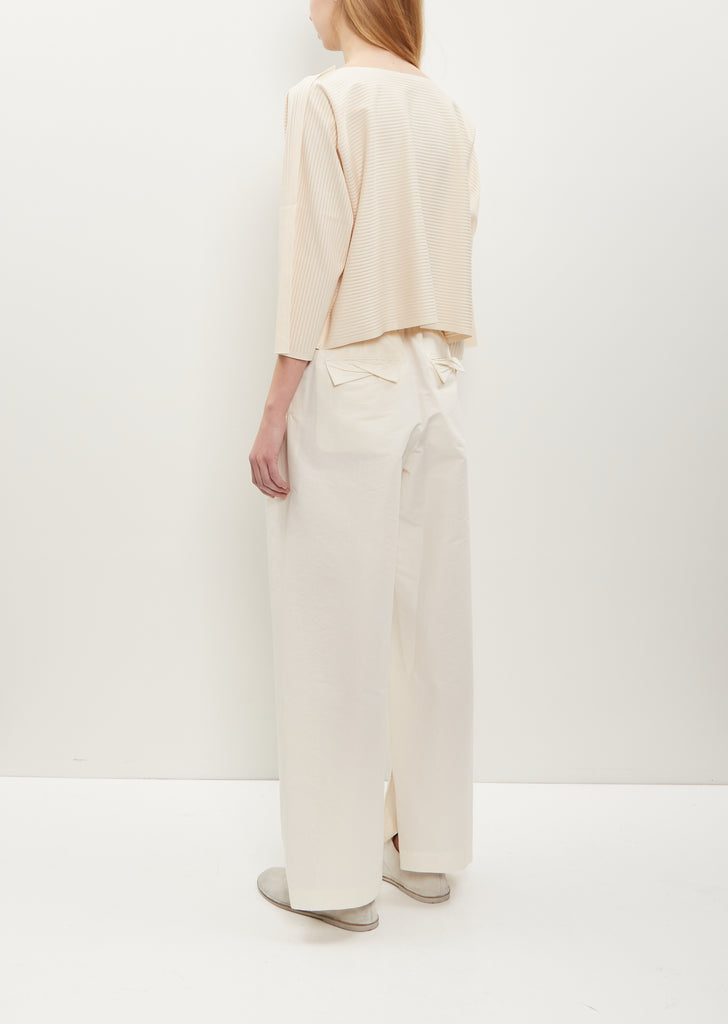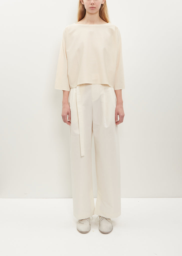 Pleats Please cream popover top with a cropped length in horizontally pleated fabric with a slight stretch. Boxy silhouette with a slightly oversized fit.
