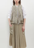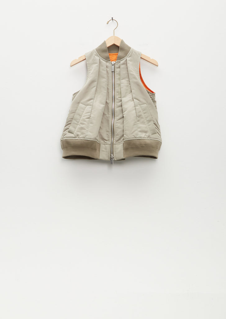 Sacai light khaki vest with pleating on front and back in technical fabric. A-line silhouette with a regular fit.