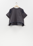 Sacai charcoal grey short sleeve t-shirt with contrasting panels at sleeves, a single front patch pocket and adjustable hem in soft cotton jersey.
