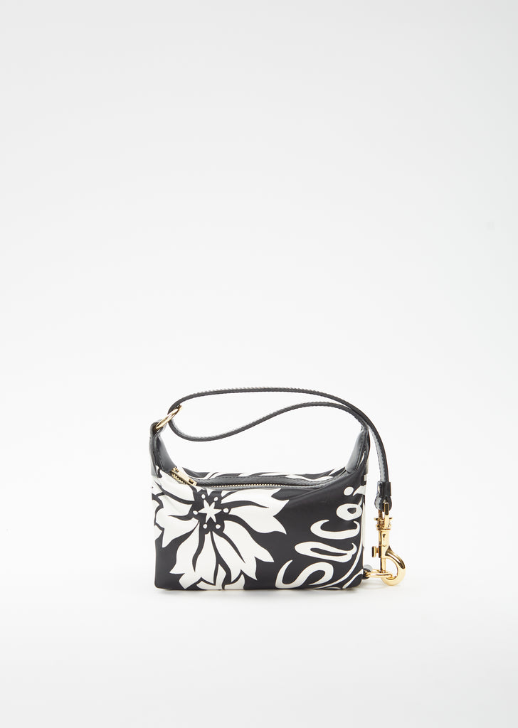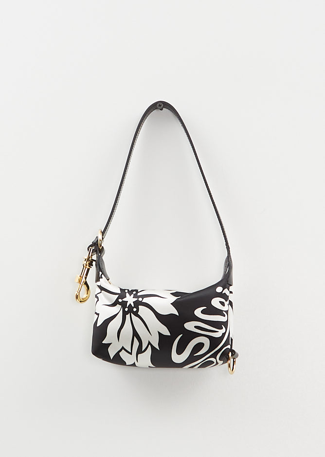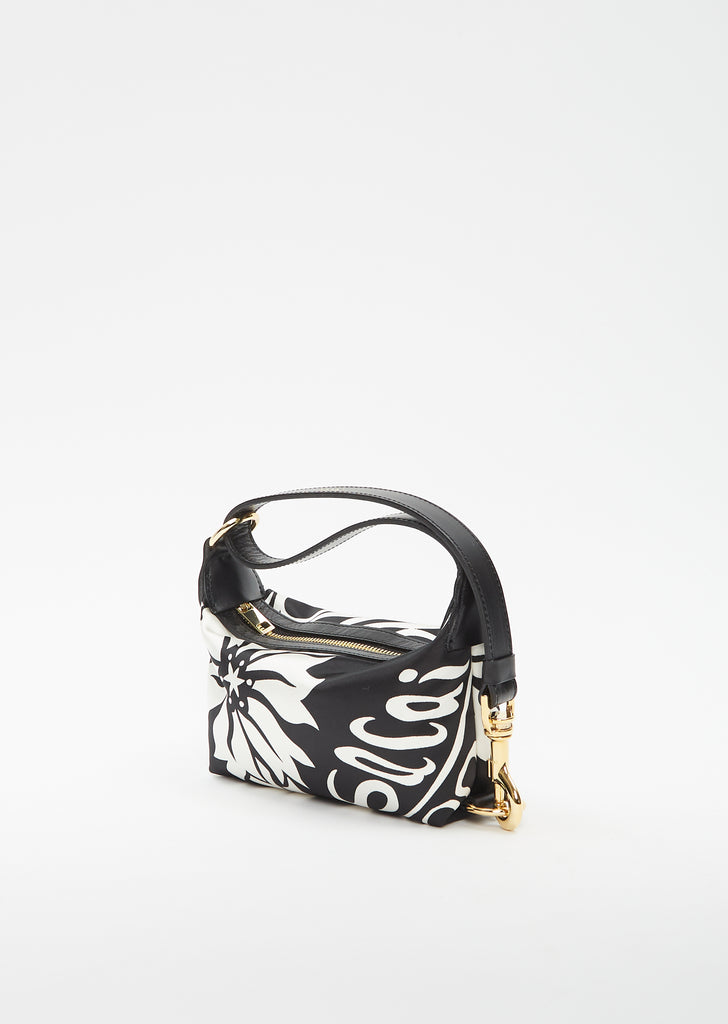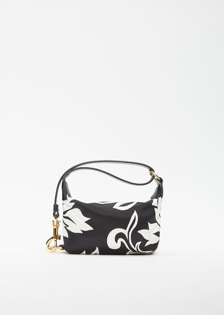 Sacai small handbag with clasp and gold-tone metal hardware in a floral printed taffeta fabric. Features a top zip closure and an adjustable leather handle that allows to wear this bag as a shoulder bag. Comes fully lined in cotton twill.