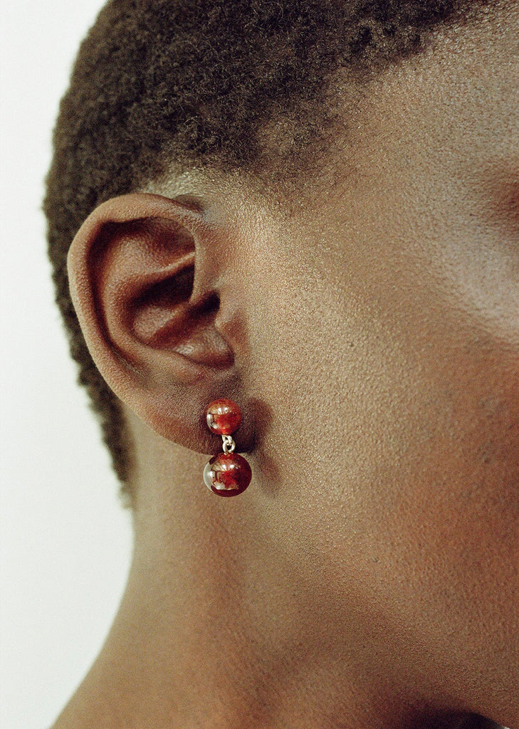 Sold as a pair. Each earring measures .33 in (8.5 mm) upper bead and .39 in (10 mm) lower bead in length. Weight: 3.5g each.