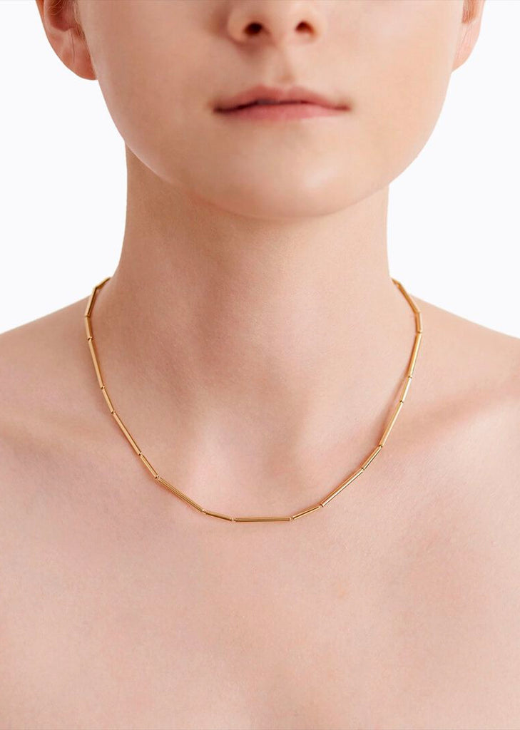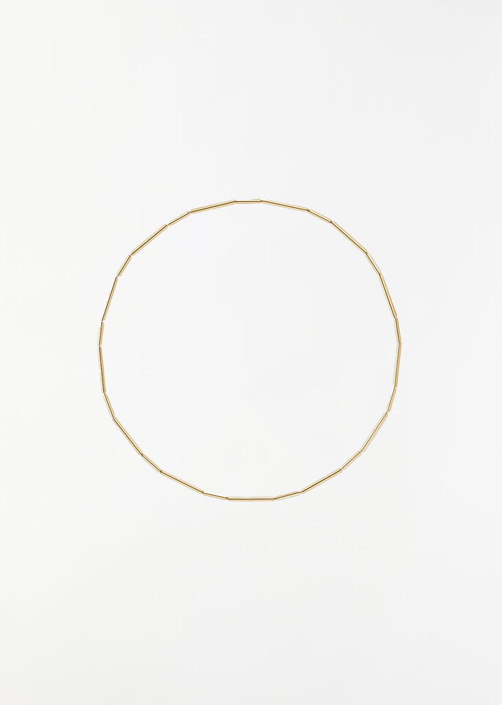 Shihara alternating 2cm and 1cm gold tubes bead chain necklace with concealed screw clasp in 18K yellow gold.