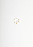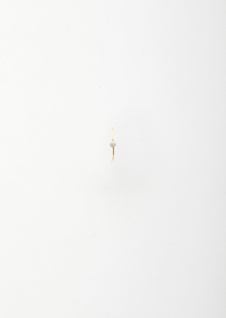 Shihara single stone diamond hoop earring with seamless circular post that hooks in place at the hidden clasp behind the stone in 18K yellow gold and diamond.