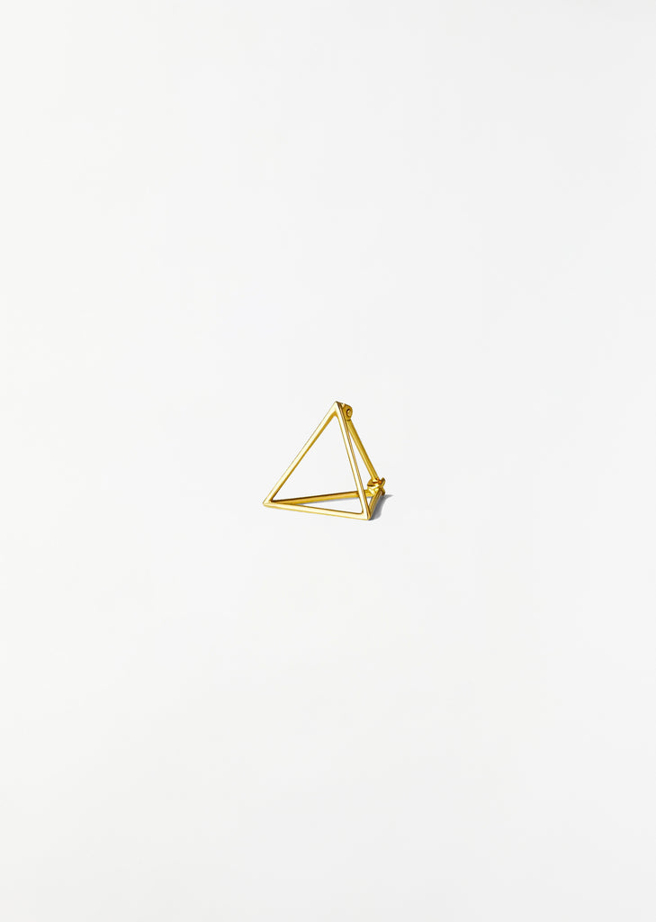 Shihara three dimensional floating triangular earring with concealed latch back fastening in 18K yellow gold.