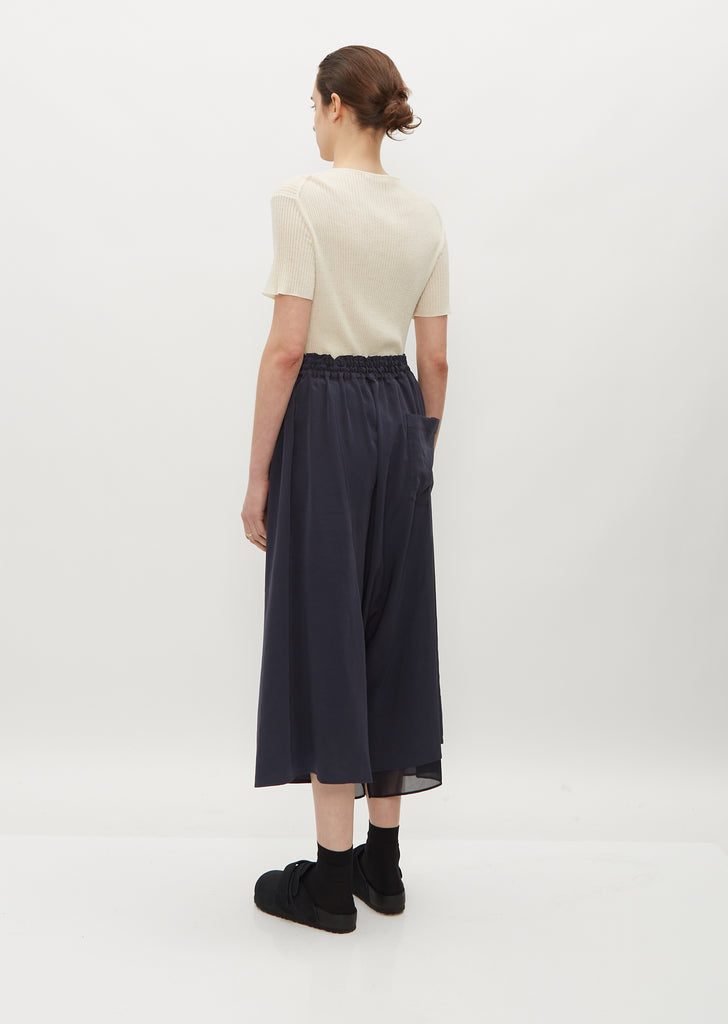 Y's by Yohji Yamamoto blue-grey trousers with cropped, wide legs and draped elongated rise in viscose. Flared silhouette with an oversized fit.