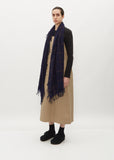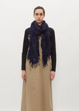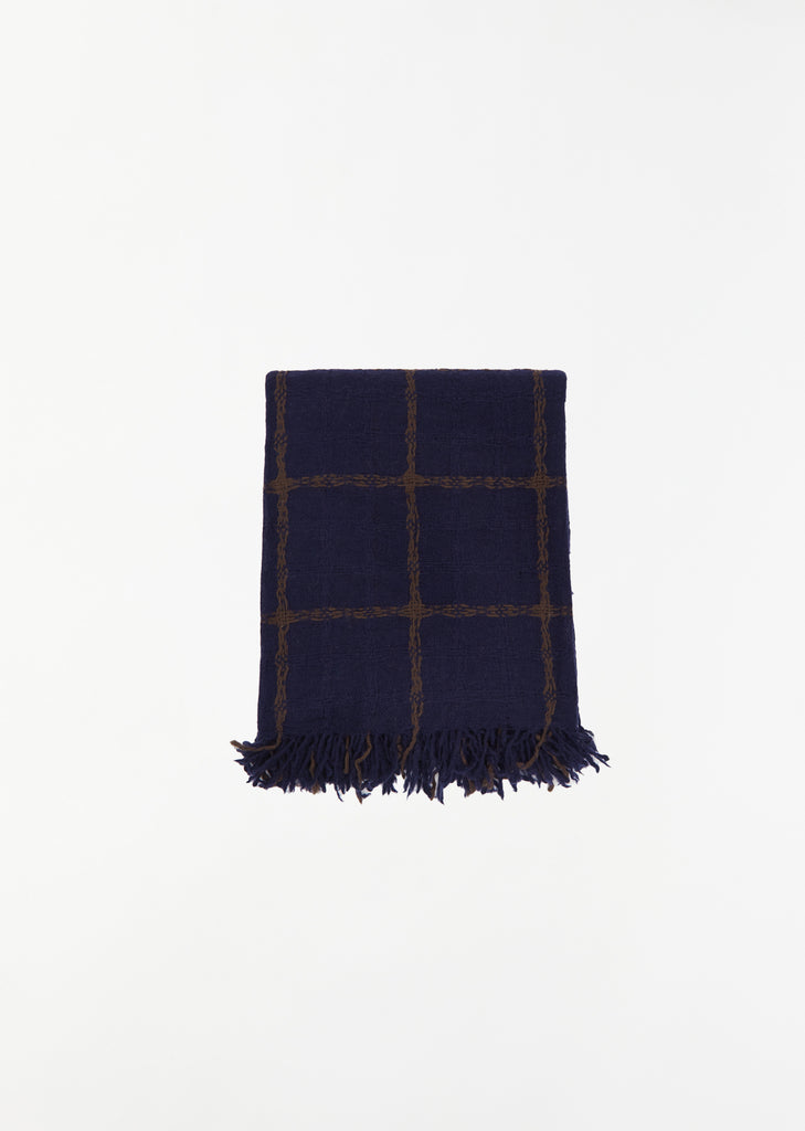 Y's by Yohji Yamamoto navy & beige plaid scarf with a rectangular shape knitted in mid-gauge cashmere gauze. Finished with fringe trim at all sides.