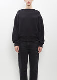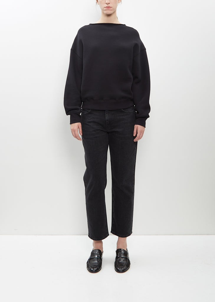 6397 black sweatshirt with mock rolled neck in mid-weight cotton and wool blend jersey. Features dropped shoulders and rib trim finishings at cuffs and hem. Relaxed fit.