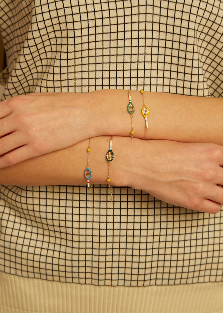 Tennis Pelota Enamel Bracelet — Sky Blue / Coconut White