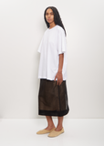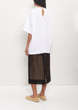 Carven white oversized t-shirt with herringbone ribbon tie closure at back neck in cotton jersey. Features a round neck with cover stitch finish and a straight hem.